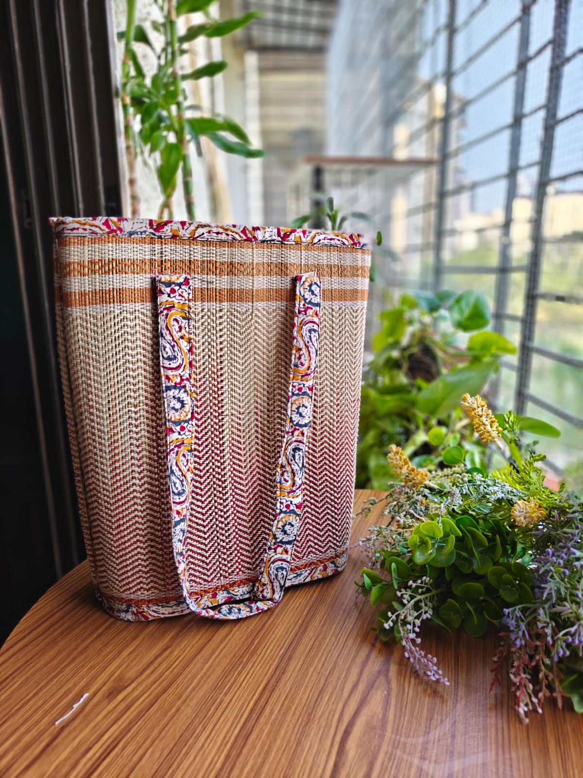 Madurkathi weaving in Eastern India produces not only mats but a range of domestic objects: baskets for storage, coasters, trays, and small containers. These crafts use the same natural reed and the same hand-weaving techniques that have been passed down in wetland communities. At House of Dhrti we curate madurkathi crafts that fit modern homes without losing their roots — functional, beautiful, and traceable to the weaver. Each piece supports the same artisan families who weave our madurkathi mats.
